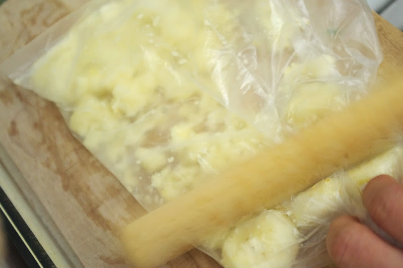 把荸薺放在塑膠袋裡面用棍棒敲碎了會比用切碎的來得快