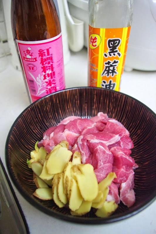 麻油肉有一樣東西不加,那就是鹽,靠麻油炒肉再加米酒本身就很有鮮味了,加了鹽會容易發苦,出來的湯汁澆在飯上很開胃的,是失敗率很低又接受度高的家常菜。