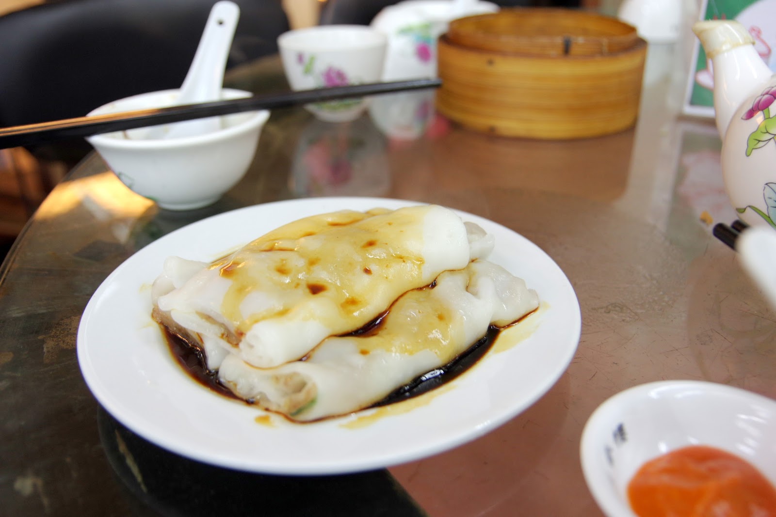 腸粉來說是傳統老式那種,比坊間的要厚實且米香特別濃,所以是好吃的也很能吃出特色,但餡料真的不算討喜,牛肉餡料以這樣扁平呈現實在口感不太好,吃不到肉的鮮也咬不到嚼感,而要吃牛肉餡料的滋味倒不如選擇干蒸牛肉燒賣,整顆餡料的彈度更好,且牛肉的甜度與淡淡的陳皮香氣也更鮮明,不會被醬汁給過份蓋去,唯一的缺點就是捏的太醜了。