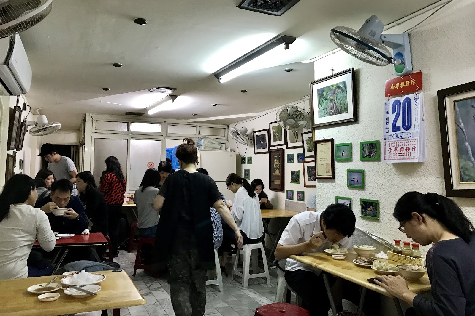 店面來說其實不算醒目,隱身於南昌路騎樓中某處的二樓,單從大馬路來看是不太明顯的,只有騎樓內的招牌比較醒目,穿過有點陡窄的樓梯上來二樓就能看到排隊的人龍,先在櫃台跟老闆點餐說要幾顆水餃再找位子坐,其實上菜速度也蠻快的,這裡也不是什麼適合聚餐的好所在,所以也不會等太久就是了。