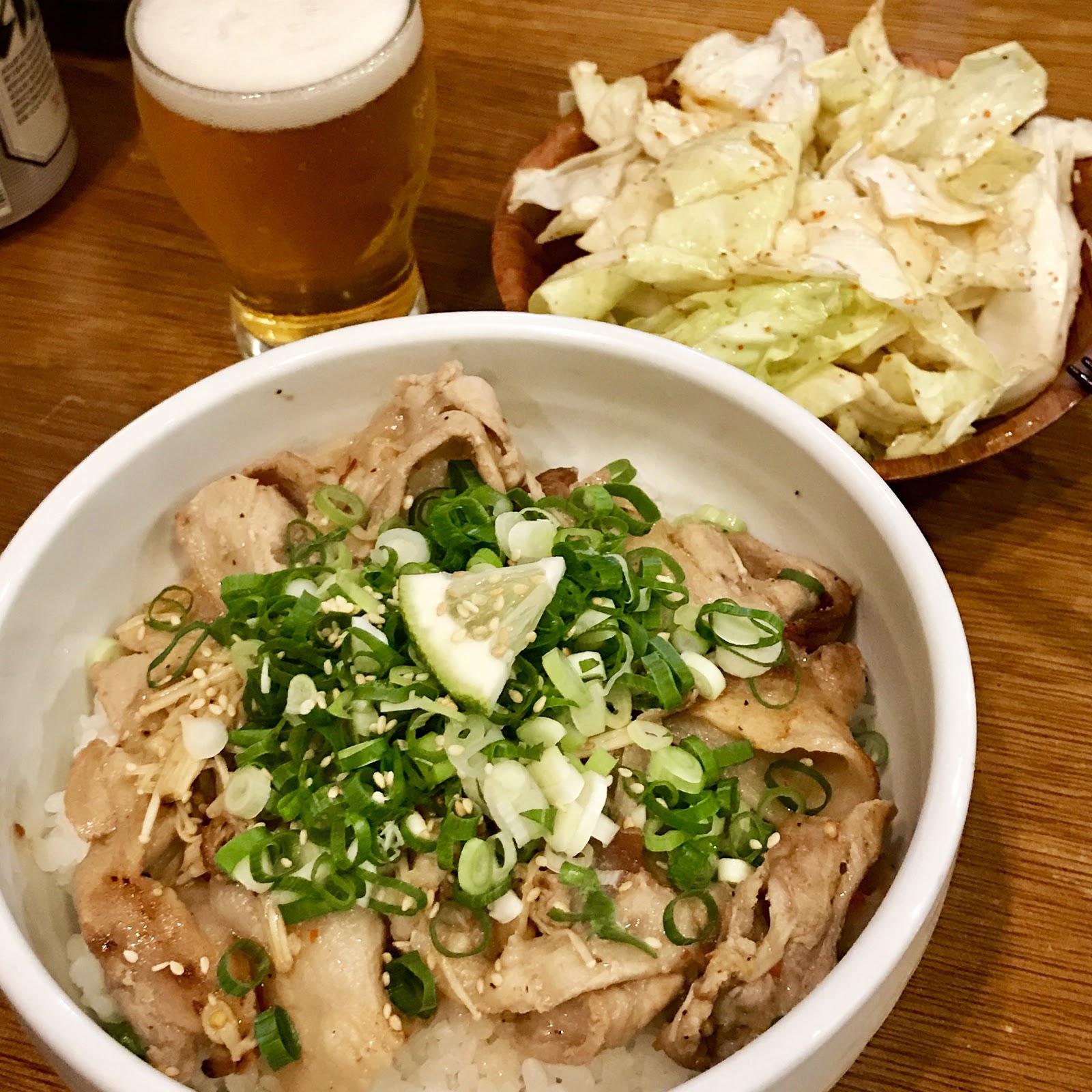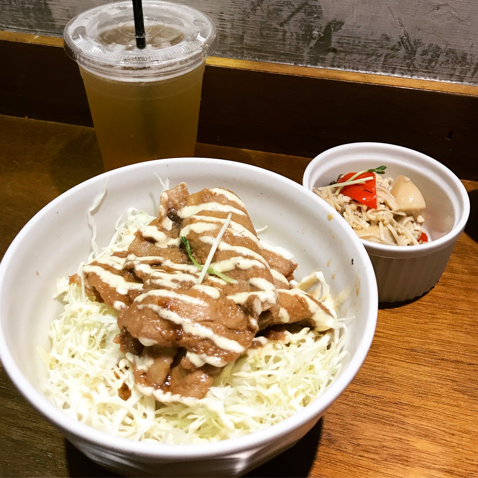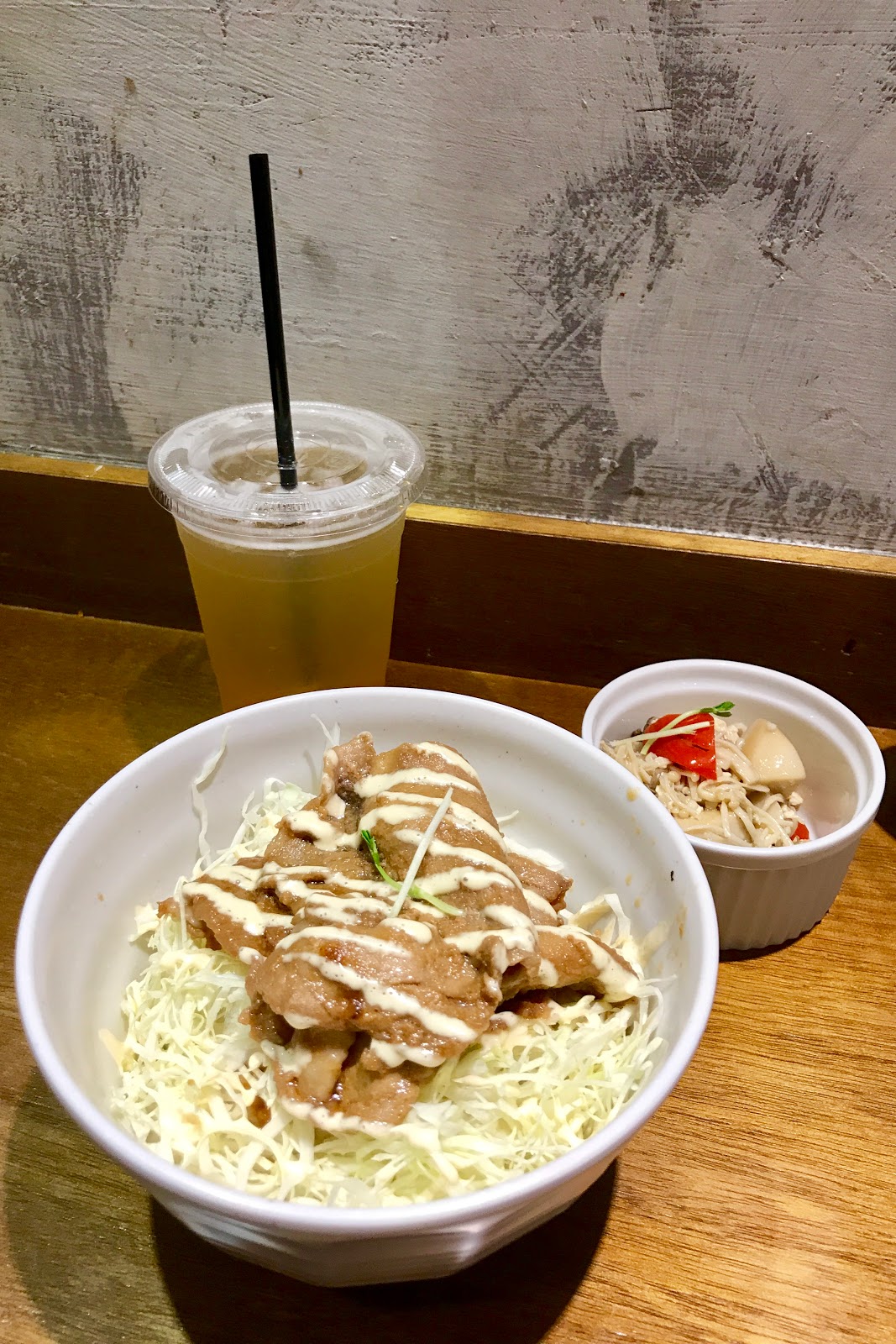 個人最喜歡的是這檸味塩蔥五花肉丼,豬五花肉片燒烤後不會太乾,也將多餘的油脂逼出來了,本身有嚼感又不會焦硬,搭配點檸檬汁頗解膩開胃,蔥花跟下方金針菇補足香氣跟水分,加一點點五味粉就很好吃了。就男生而言大碗的份量還蠻夠的,不過個人建議搭配個巴利巴利高麗菜,如泡菜般的水感與爽脆會更舒服,本身稍稍醃過而已不帶生氣,微酸微辣以這份來說CP值還不錯。