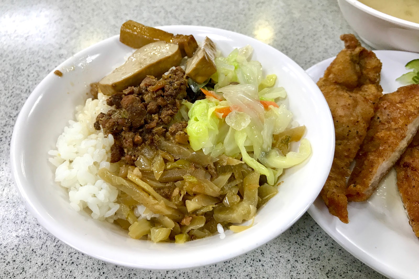 而菜飯來說感覺比記憶中的要少一些了,以前感覺菜會鋪滿一點蓋住白飯,不過他們家的酸菜跟肉燥還是一樣,單吃其實不算突出也不肥嫩,要全拌開來了再配著排骨一起吃才顯滋味,酸菜的鹹香跟肉燥用來搭配排骨醃過的香甜特別合拍。價位來說現在是120元,就精緻度度跟用餐環境來說是有點偏高,但有想要回憶老味道的話也是值得偶爾造訪就是了。