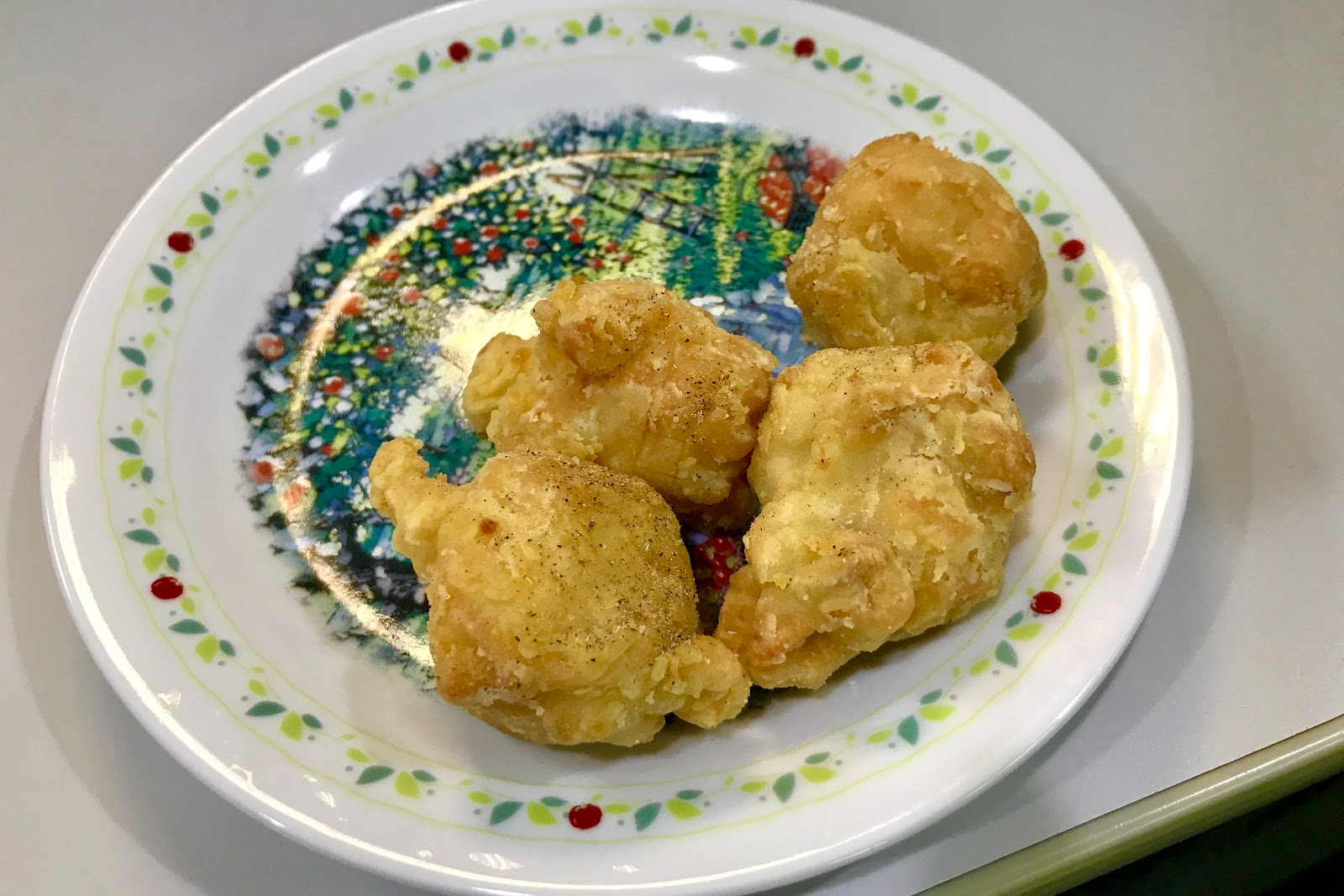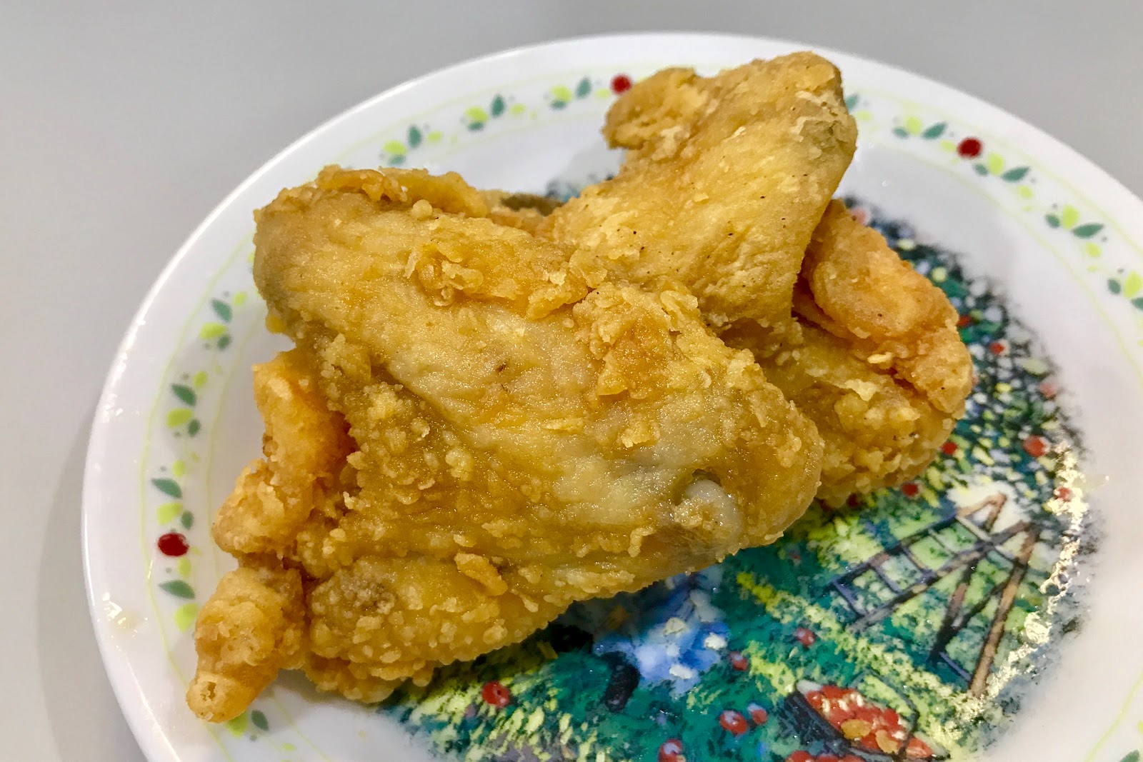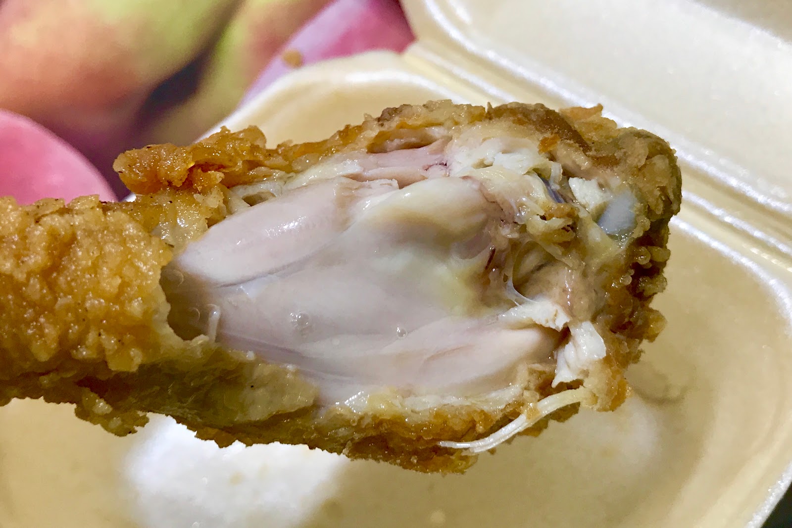 個人覺得他們家雞腿、雞塊跟雞翅最好吃,也是四號餐或五號餐所有的品項。主要在於裡頭保有豐富鮮甜的肉汁,外皮也薄酥好咬,且這三者肉質都蠻滑嫩的,咬感間感受不到太明顯的纖維感,趁熱時伴隨著雞汁實在誘人。而更印象深刻的是放涼了也不會難吃,第一次造訪時是買事先炸好的雞腿,但到朋友住處時又閒聊了快一小時才想到要吃它,結果那雞腿依舊軟嫩好咬,肉汁雖然被炸皮吸收得差不多了,卻也不顯乾柴或油臭,這三品都蠻推的。