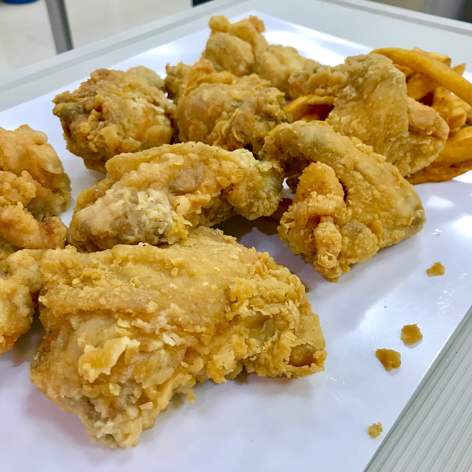 這天只有炸雞腿跟炸雞翅炸好了不用等候可以買了走