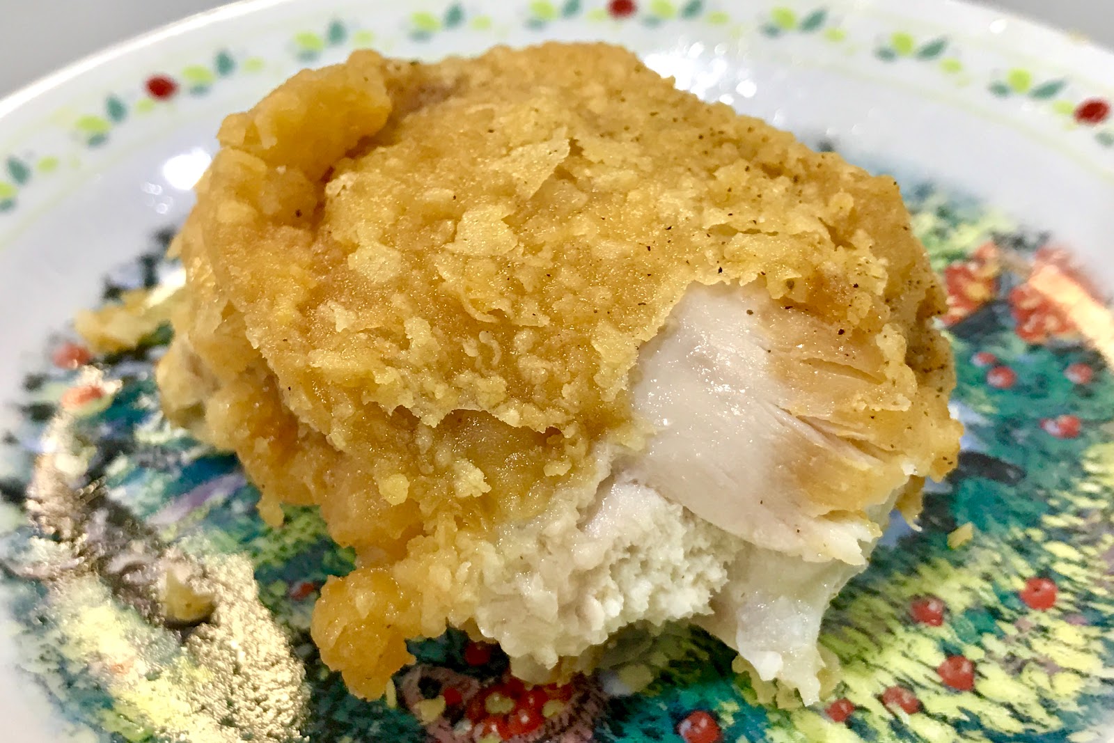 相較下紐奧良香雞排就沒那麼理想,充其量只算是特別,如同台式香雞排採用胸肉那塊,肉質雖不到乾澀但纖維感很明顯,以這樣的咬感與肉汁來說派克或其他坊間選擇都更划算許多,比較新鮮感的只有調味中帶有些許奶味,雖不難吃但也不到美味的程度,而友人的描述是更加貼切,幾乎跟日本的玉米棒風味一模一樣,這品就不會是個人的選擇。