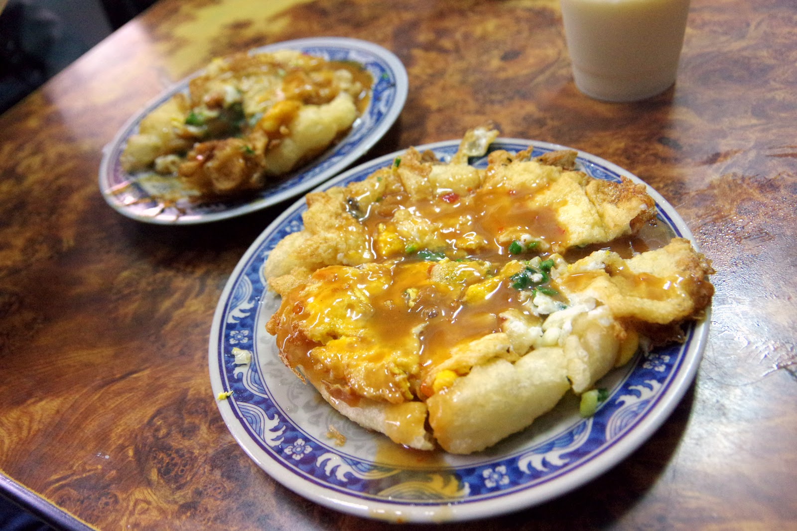 朋友只推薦雙蛋蛋餅,討論了後覺得大概是這樣,餅皮炸得酥脆後較大片且多少含油,以蔥花蛋的軟嫩與香氣來搭配才顯得平衡,感覺兩顆蛋的比例是最合適的了。推薦早早來這或先拿號碼牌會比較省時間。