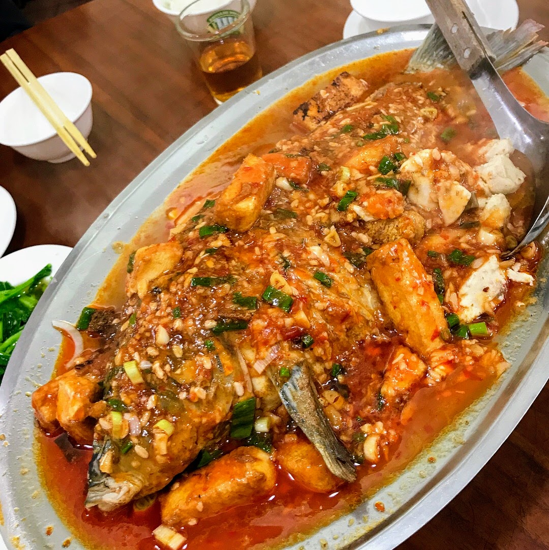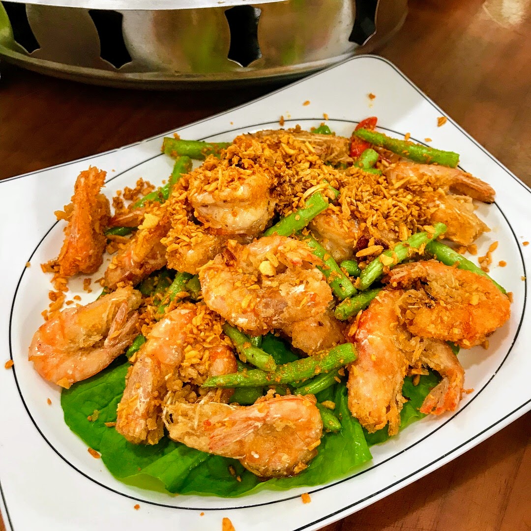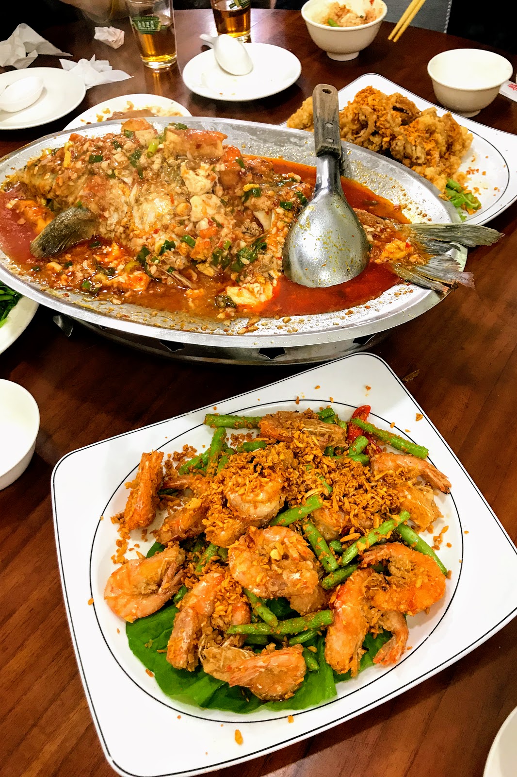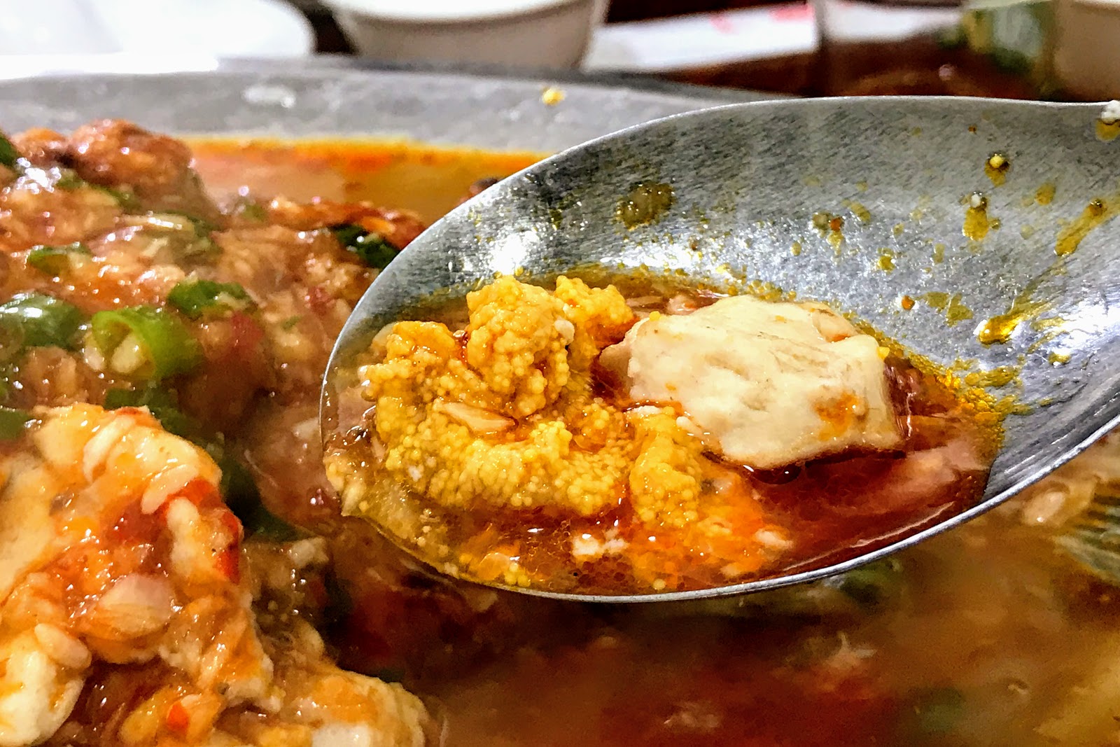 再來推他們家的避風塘中卷,同樣上桌也是硬漢料理的份量,中卷切成肥圈炸得硬殼酥脆,帶上開胃的蒜酥香氣,舌觸也不帶多餘的殘油十分乾香,建議四五人分食著比較剛好,確實好吃推薦。而避風塘炒蝦也很不錯,蝦身肥厚開背更顯彈脆,扎嘴的刺鬚也都修剪了乾淨,連殼吃也方便好嚼。這兩者也都特別好巴醬汁,拿豆瓣魚的醬料淋上也是美味。