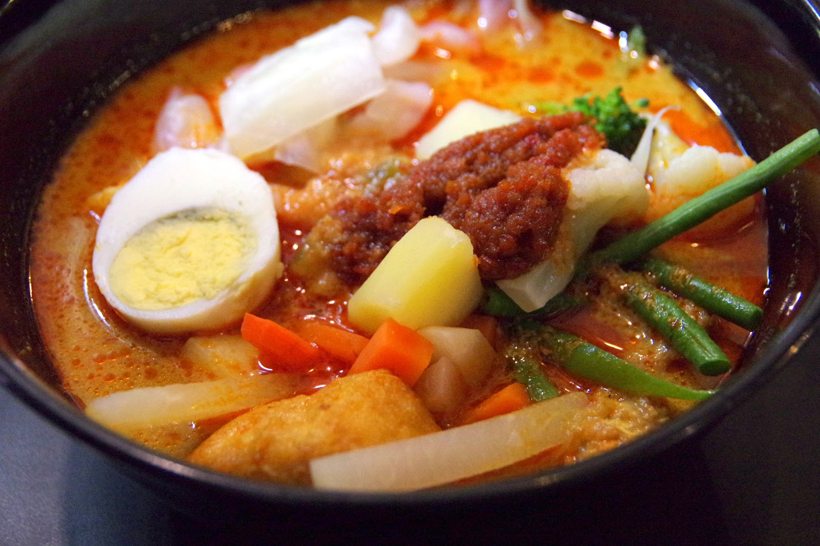 他們家的椰漿咖哩湯頭確實出色,這天是禮拜四中午造訪,所以主食是Lode而不是Curry Laksa,這種壓過的米糕口感介於糯米跟蘿蔔糕中間,很能吸附湯汁又能帶出米香而不爛,而湯頭也是目前嚐過最滿意的,湯韻渾厚飽滿且辣度直接又不殘留,奶味圓潤又絲毫不膩口,搭配蔬菜、豆腐泡跟天貝等食材,作為平日午餐是再理想不過了。