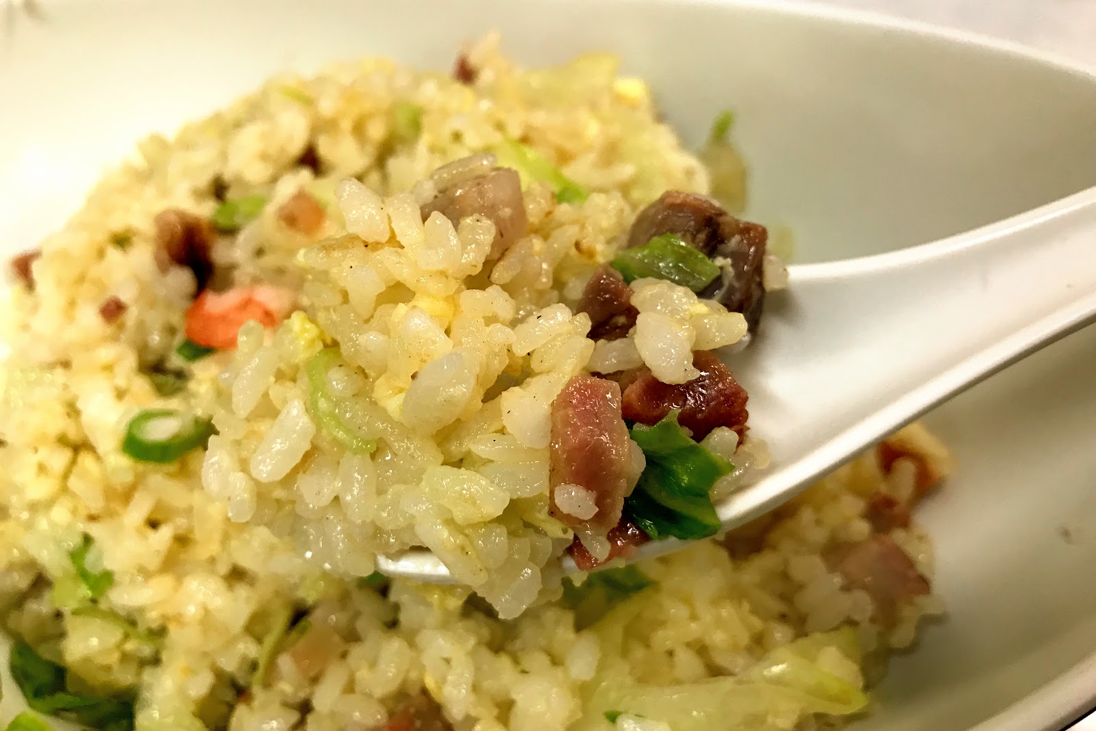 他們家的廣州炒飯其實一直以來味道都不錯,叉燒的鹹鮮都有帶入米飯之間,份量也還算足夠,以90塊這種價格我們也不好苛求蝦仁品質,只是最令人詬病的一點還是在水氣太重,他們家的炒飯一直都炒不鬆爽,就像一般家庭料理那種水氣黏度仍在,當然可能內場太忙碌,處理熱飯都來不及了更別提用冰箱隔夜飯,但這就看各人選擇了。反倒是廣炒麵表現突出,麵體酥脆且香氣有到,燴汁口味不賴而配料的份量也很有誠意,以這個要價可以接受,缺點是帶回去的話麵就太爛了,建議還是當場吃得好。