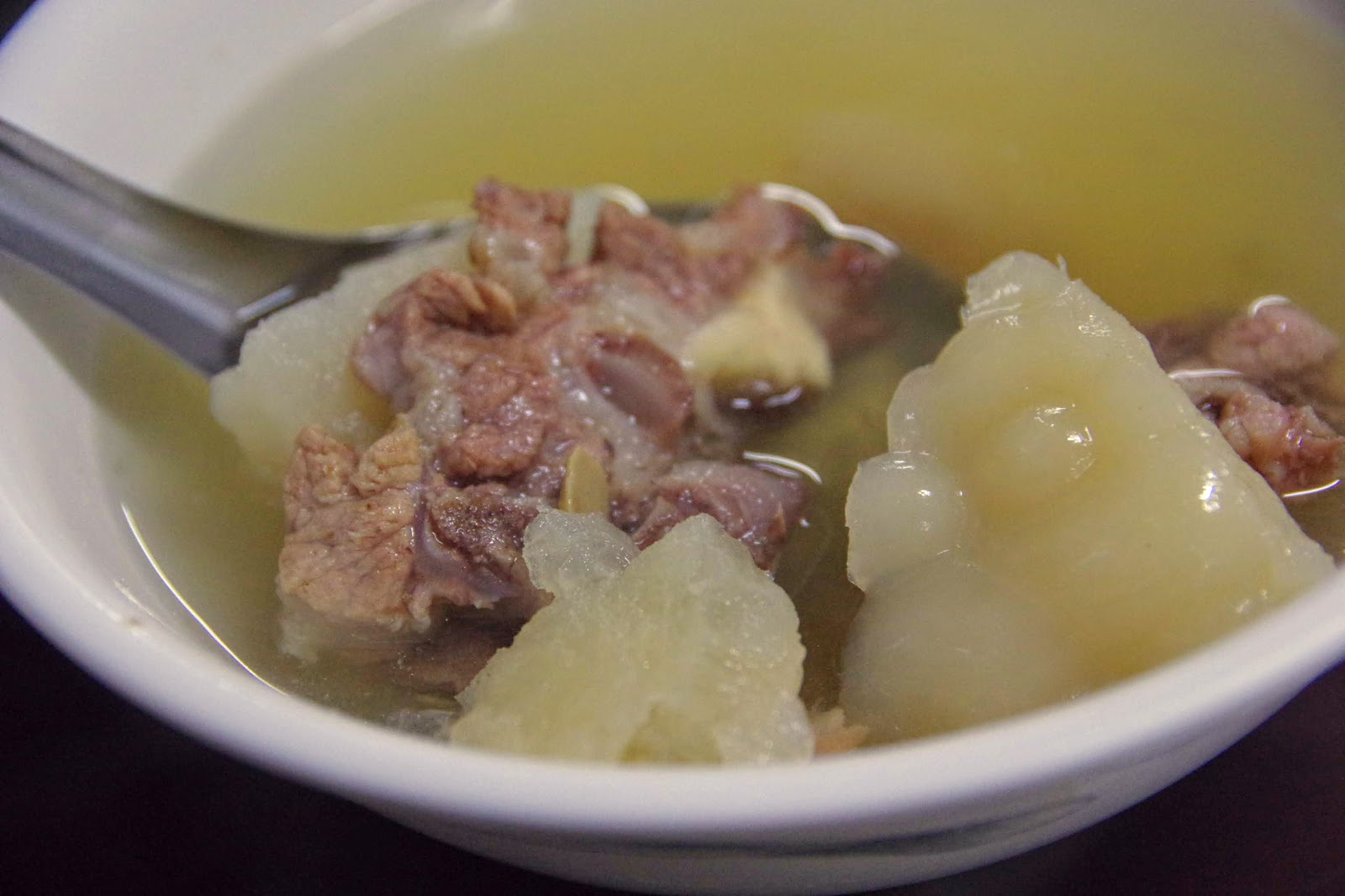 此外下水湯一碗20也是划算,裡頭有雞腸、雞肝、雞胗料還不少,酸菜湯底鹹鮮又能開脾,配雞肉飯的萬年經典。不過個人更偏愛苦瓜排骨湯,混有丁香熬煮的湯韻更鮮更爽口,會回甘還不會過鹹。一般人吃雞肉飯配下水湯的經典組合就能解決一餐,價格還50元銅板價剛剛好,開車經過的話不妨試試。