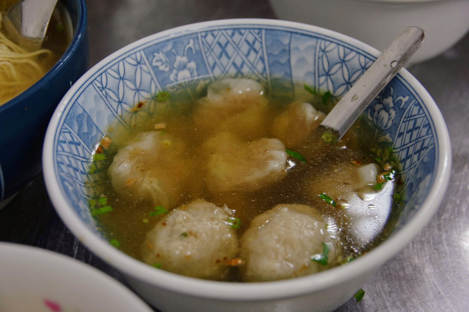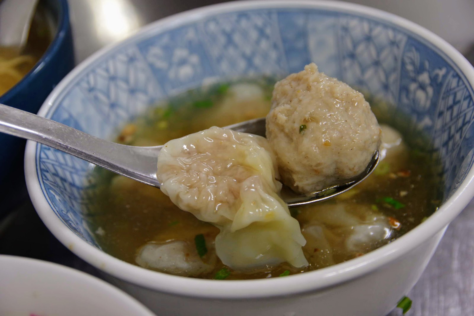 餛飩跟魚丸是個人認定的賣點,宜蘭的餛飩相當特別,剛起鍋時麵皮頗有口感,跟肉餡取得漂亮的平衡,且讓湯汁吸收在間隙裡,實在格外地好吃,然而這特性卻會在五分鐘後變了調,麵皮軟得特別快,甚至湯匙一撈就皮肉脫離,不說還以為在玩撈金魚呢,因此建議在5分鐘內就把餡料吃完,或是趕緊把他撈出來避免泡著才好。而魚丸在製作時就混入了油蔥跟蔥花,且白胡椒的氣味也下得有感,因此除了口感較結實以外還多了香氣的層次感,不妨叫個餛飩丸湯試試吧。
