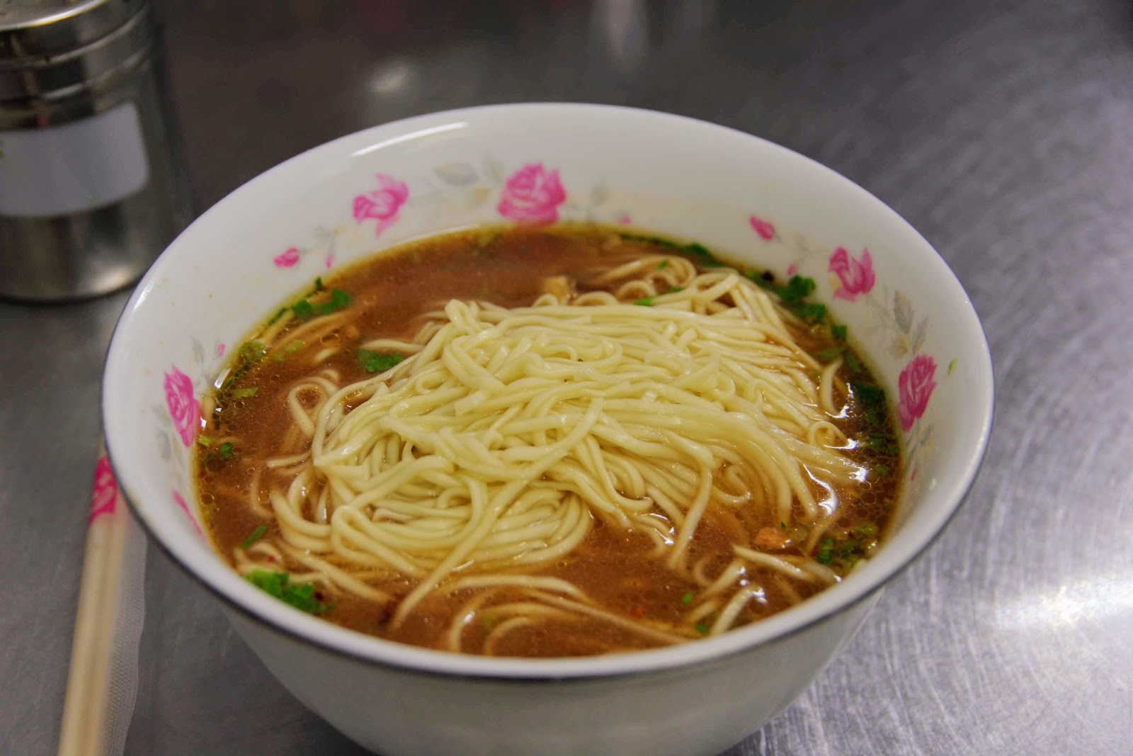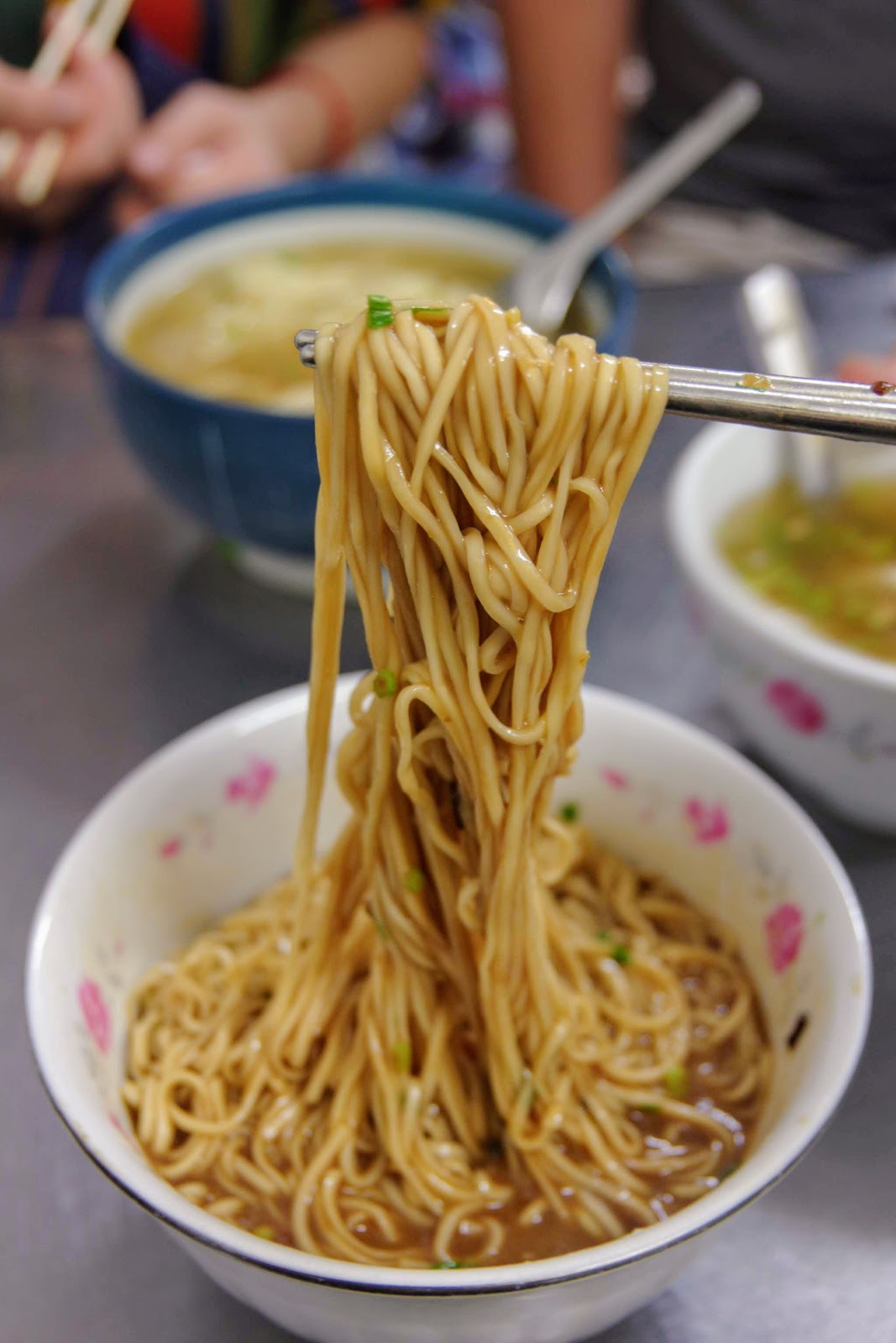 他們家出名的是麻醬麵,不過論麻醬麵我們會更喜歡大麵章或是自己煮的配方,因此麵類的調味其實不算突出,但麵體是用標準的宜蘭麵。這種麵的特色是十分地細直而且快熟,剛起鍋時咬口間還帶著細脆地麵芯,其實跟博多拉麵的那種脆骨倒有些相似,不過這種麵也特別地團黏而不好拉開,常常扯得狼狽又噴得身上到處都是,然而這種特性也相當好沾上醬汁就是了。